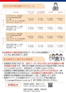 ・当所経由での申込みが必要となります。東商検定HP等からお申込みされた場合は会員割引の適用対象外となりますのでご注意ください。