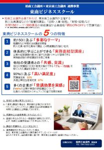 柏商工会議所は、東京商工会議所主催(以下、東商)の「東商ビジネススクール研修講座」と連携しています。